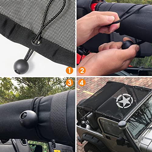 INSTALLAZIONE COMODA - La parte superiore in rete TJ si installa facilmente collegandosi ai roll bar del tuo TJ con corde elastiche integrate. Parasole in forma sotto TJ Hard Tops e Soft Tops, senza intestazioni, strumenti, hardware sono necessari.