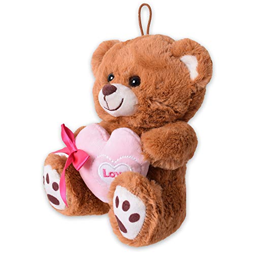 TE-Trend Orsacchiotto con cuore, regalo di peluche, orsetto, orsetto, orsetto di peluche, orsacchiotto, cuore rosa, 18 cm, marrone