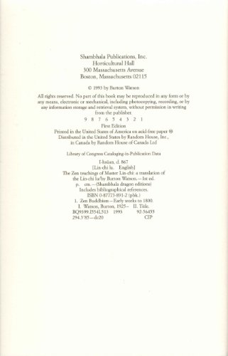 The Zen Teachings of Master Lin-Chi: A Translation of the Lin-Chi Lu