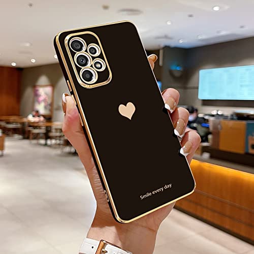 Teageo Cover per Samsung A53 4G, Cellulare da Donna a Forma di Cuore Aspetto Galvanico Morbido TPU Fotocamera Protezione Antigraffio Antiurto Custodia Case per Samsung A53 4G-Nero