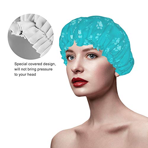 Teal Aqua Blue Turchese Dog Paws Cuffie da doccia, Cuffia da bagno per uomini e donne Cuffie da bagno elastiche riutilizzabili a doppio strato impermeabili Cuffie da doccia per tutte le lunghezze