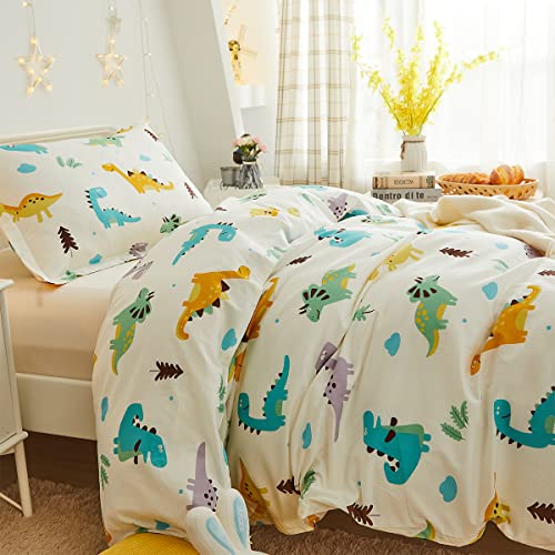 TEALP Set di biancheria da letto per bambini con dinosauro, con copripiumino e federa per letto singolo, con dinosauro, verde