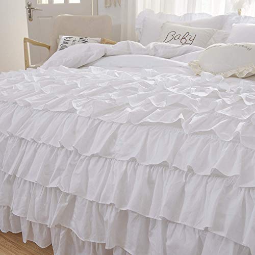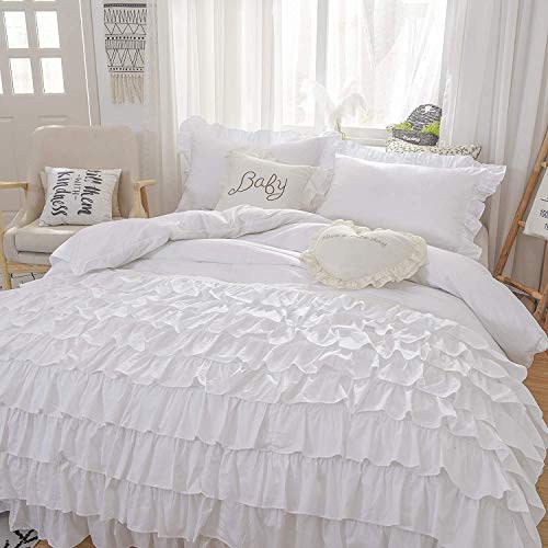 Design esclusivo: disegnato con uno stile elegante, copripiumino bianco con volant a 9 strati, con federe per cuscini con volant singoli e per regalarti una notte di lusso.