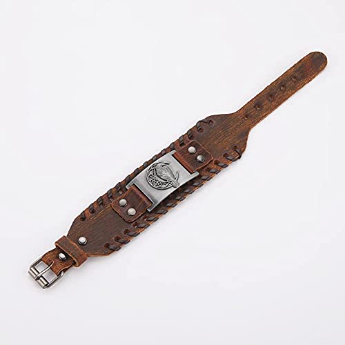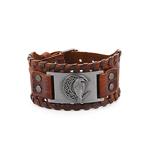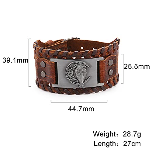 TEAMER Bracciale in pelle di corvo di Odino vichingo per uomo Cintura avvolgente marrone nera Bracciali di corvo Gioielli con amuleto pagano celtico nordico (Stile 2 Argento antico)