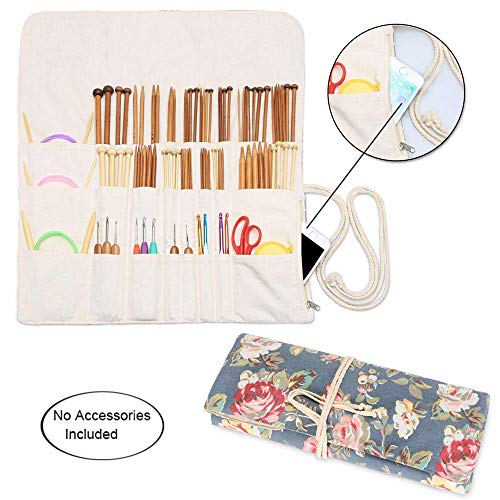 MOLTI SCATTI - 27 slot per diversi aghi di lunghezza, perfetti per aghi a maglia (fino a 14 pollici), ganci a crochet, aghi a maglia circolari e accessori. 1 tasca con cerniera.