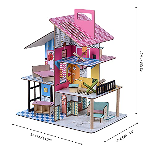 DESIGN: presenta un design aperto a più livelli con tetto rosa, accenti blu e pavimento decorativo per un'aggiunta divertente e colorata a qualsiasi stanza dei giochi. Decorazioni complesse, motivi e trame realistiche sono pieni di bellissimi dettagli per un'esperienza più realistica.
