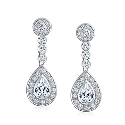 Teardrop Halo Cubic Zirconia Pave Cz Dangle Prom Statement Clip On Dangle Earrings For Women Argento Placcato Brass