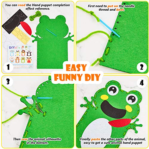 Facile da usare: La marionetta a mano è inclusa come riferimento. È anche possibile creare idee colorate in base alle proprie preferenze, è necessario prima stringere e annodare il filo dell'ago, poi cucire la sagoma dell'animale sul fondo e infine inserire le altre parti dell'animale, per ottenere facilmente una simpatica marionetta a mano animale.