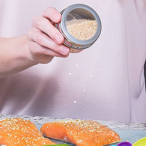 Tebery - Set di 12 barattoli portaspezie rotondi, magnetici, parte superiore trasparente, da attaccare al frigorifero