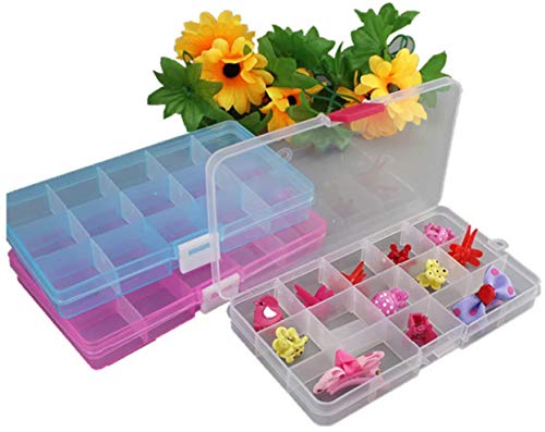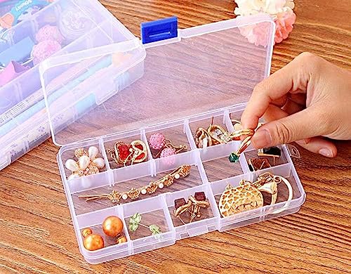 Tebery Set di 15 scatole portaoggetti in plastica per gioielli e orecchini con 15 scomparti regolabili