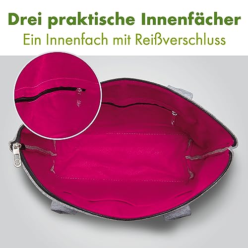 Tebewo Borsa piccola e media da donna, in feltro, borsa per la spesa con chiusura lampo, tasche interne e manici, borsa per la spesa (grigio/magenta)