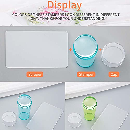 TEBX, 1 raschietto per unghie + 1 raschietto in silicone trasparente per stampare unghie con tappo per smalto fai da te con testa in silicone, colore blu