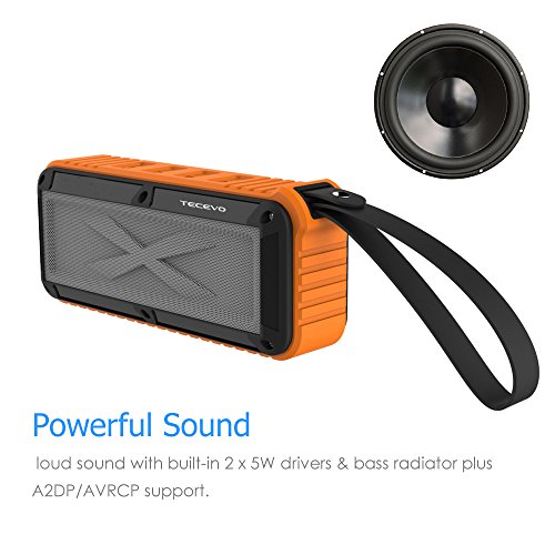 Tecevo - Altoparlante con microfono wireless Bluetooth, per esterni, robusto, impermeabile agli spruzzi, resistente all'acqua, antiurto, a prova di polvere