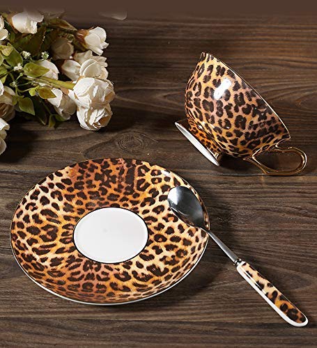YBK Tech Euro Stile Tazza & Piattino Impostato Arte Osso Cina Ceramica Tè Caffè Tazza per Casa Cucina Matrimonio (Leopardo Modello)
