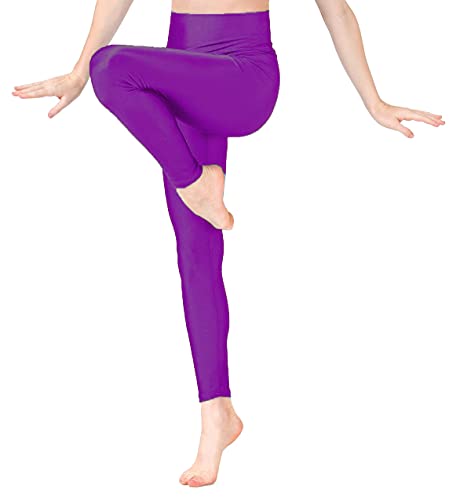 Re Tech UK Leggings da ginnastica a vita alta per bambini e ragazze, con elastico in lycra per bambini, Viola, 11-12 Anni
