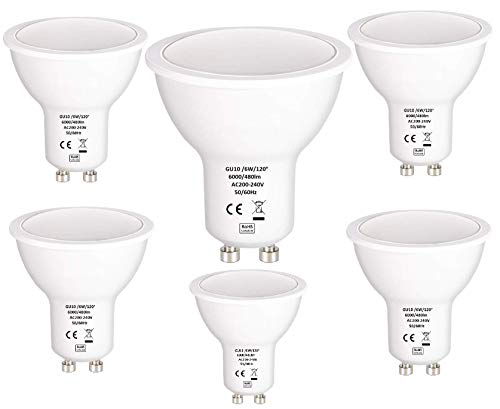 Tech Traders, 6 lampadine 6W GU10 LED, pari a lampadina alogena da 50 W, Cool white color, GU10, 6.0W 240.0V [Classe di efficienza energetica A++]