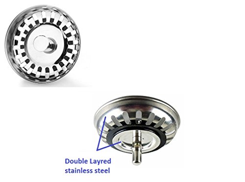 Tech Traders Sink-Strainer-double-layer Tappo di Scarico a Doppio Strato in Acciaio Inox per lavello della Cucina, Argento, 79.3 mm