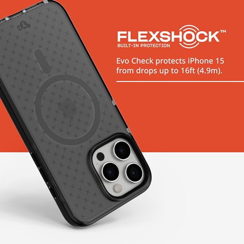 Tech21 Check for iPhone 15 Pro Max - Compatible with MagSafe - Basic case - TPU and Biodegradable material - Smokey/Black - Scientifically proven multi drop protection: 4,9m