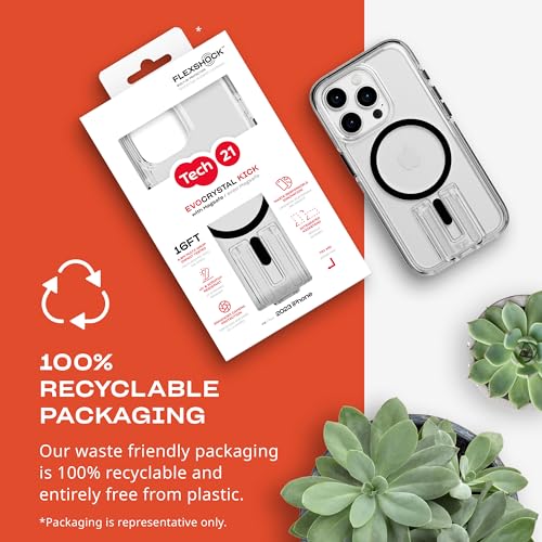 Tech21 Crystal Kick for iPhone 15 Pro - Compatible with MagSafe - Basic case - TPU and Biodegradable material - Clear/Black - Scientifically proven multi drop protection: 4,9m