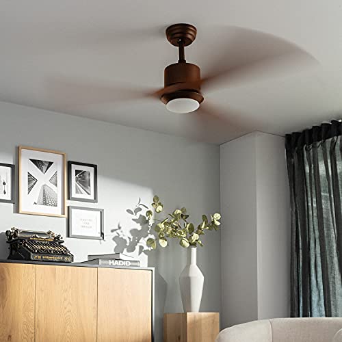 TECHBREY Ventilatore da Soffitto con luce LED Forest Marrone, 3 velocità, silenzioso, telecomando, diametro 132cm, timer, motore DC, 3 pale in legno di noce.