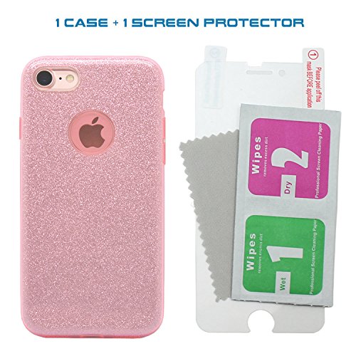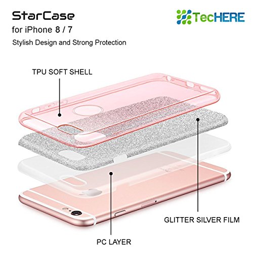TecHERE StarCase - Custodia Morbida con Brillantini Glitter per iPhone 8 iPhone 7 (4.7 Pollici) - Cover di Alta qualità in Silicone Gel con Pellicola Protettiva Proteggischermo Inclusa (Rosa)