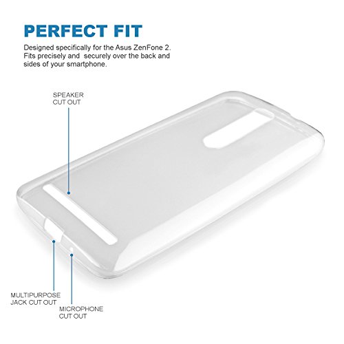 TecHERE UltraCase - Custodia trasparente ed ultra leggera per Asus ZenFone 2 (ZE551ML/ZE550ML) 5,5 pollici - Cover in silicone ultra sottile, solo 0,3 mm di spessore - Pellicola protettiva per schermo e panno in microfibra inclusi - Garanzia 100% soddisfatti o rimborsati