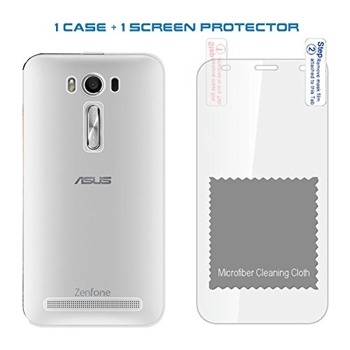 TecHERE UltraCase - Custodia trasparente ed ultra leggera per Asus ZenFone 2 Laser (ZE500KL) 5 pollici - Cover in silicone ultra sottile, solo 0,3 mm di spessore - Pellicola protettiva per schermo e panno in microfibra inclusi - Garanzia 100% soddisfatti o rimborsati