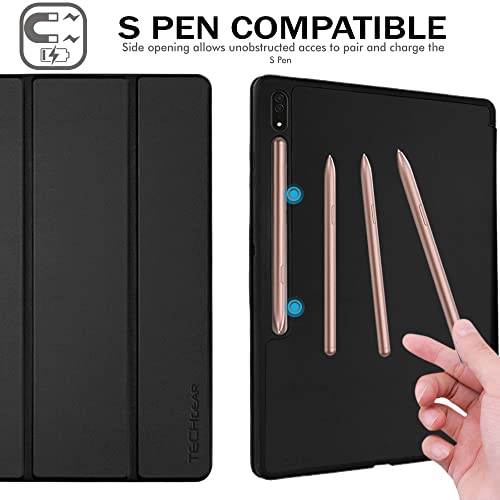 TECHGEAR Cover Compatible con Samsung Galaxy Tab S9 Ultra 14.6" 2022 (SM-X900 / SM/X906) Custodia Smart Case Tri-Fold [Compatibile con Penna] con Protezione d'angolo [Sveglia Automatica] - Nero