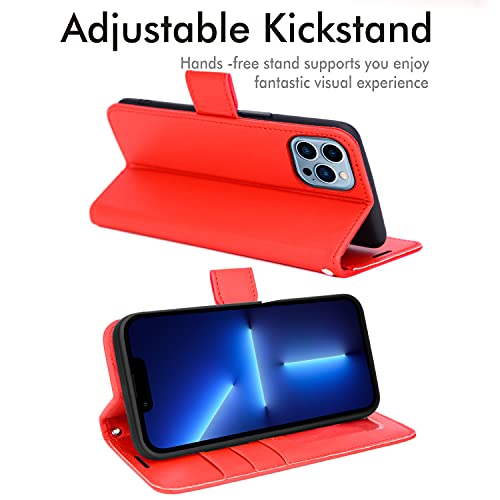 TECHGEAR Cover iPhone 13 PRO - Custodia Portafoglio in Pelle Sintetica con TPU Antiurto, Funzione di Supporto con Slot per Schede e Cinturino da Polso per iPhone 13 PRO (6,1 Pollici, 2021) - Rosso