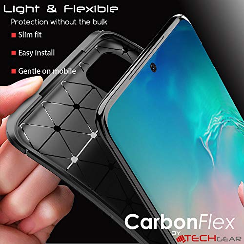 TECHGEAR Cover Samsung Galaxy S20 Plus [CarbonFlex Cover] Sottile Morbido Antiurto Flessibile Cover, TPU Design in Fibra di Carbonio Originale Custodia per Samsung Galaxy S20 Plus - Nero