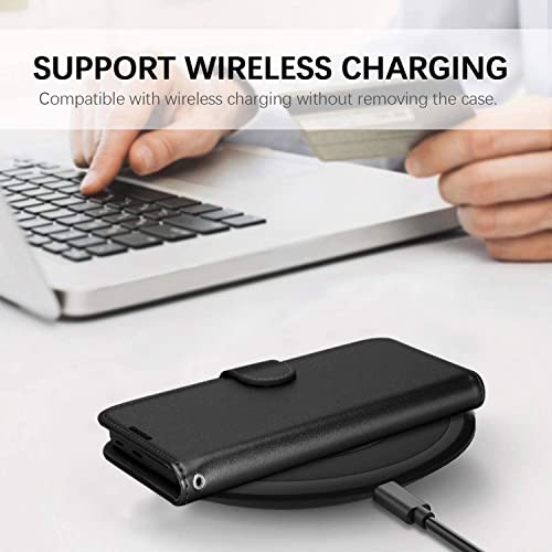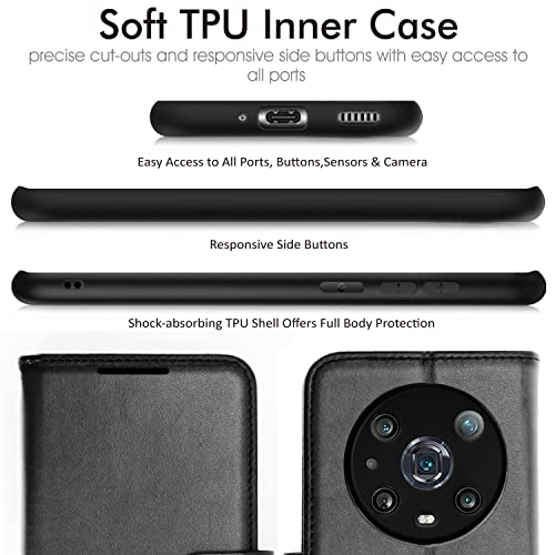 TECHGEAR Custodia in Pelle Compatibile con Honor Magic 4 Pro, Cover Libro Protettiva con Slot per Schede, Supporto e Cinturino da Polso - Pelle Sintetica per Honor Magic 4 Pro Cover Portafoglio (Nero)