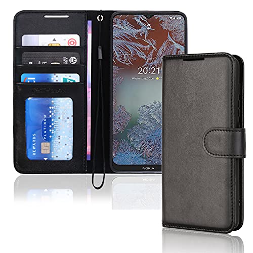 TECHGEAR Custodia in Pelle Compatibile con Nokia G10 / G20, Cover a Libro Protettiva con Slot per Schede, Supporto e Cinturino da Polso - Pelle Sintetica per Nokia G10, G20 Cover Portafoglio (Nero)