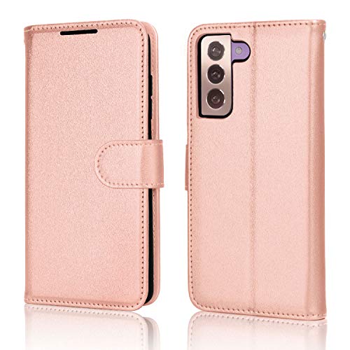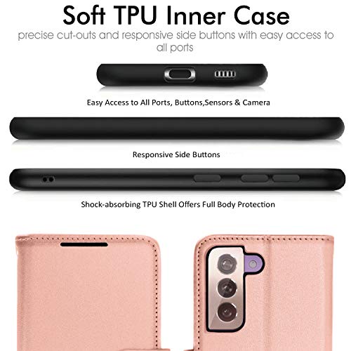 TECHGEAR Custodia in Pelle Galaxy S21 Plus, Cover Libro Protettiva con Slot per Schede, Supporto e Cinturino da Polso - Pelle Sintetica per Samsung Galaxy S21 Plus 5G Cover Portafoglio (Oro Rosa)