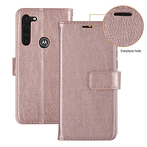 TECHGEAR Custodia in Pelle Motorola Moto G8 Power, Cover Libro Protettiva con Slot per Schede, Supporto e Cinturino da Polso - Pelle Sintetica per Motorola Moto G8 Power Cover Portafoglio (Oro Rosa)