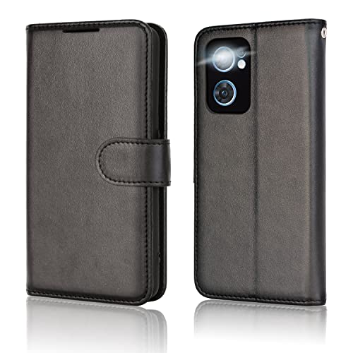 TECHGEAR Custodia in Pelle Oppo Find X5 Lite, Cover Libro Protettiva con Slot per Schede, Supporto e Cinturino da Polso - Pelle Sintetica per Oppo Find X5 Lite Cover Portafoglio (Nero)