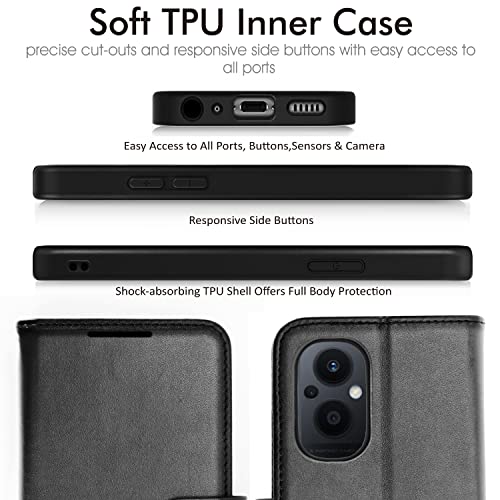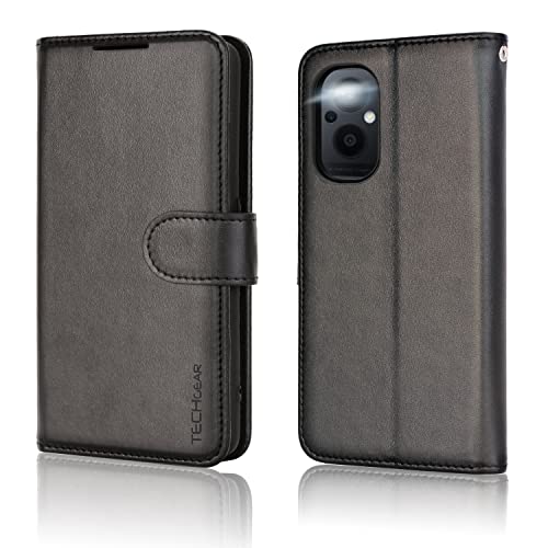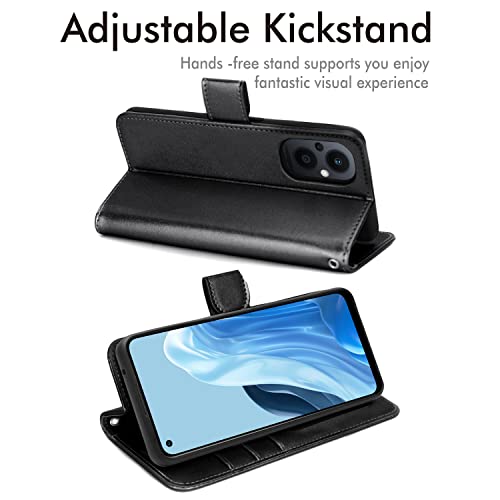TECHGEAR Custodia in Pelle Oppo Reno 8 Lite 5G, Cover Libro Protettiva con Slot per Schede, Supporto e Cinturino da Polso - Pelle Sintetica per Oppo Reno 8 Lite 5G Cover Portafoglio (Nero)