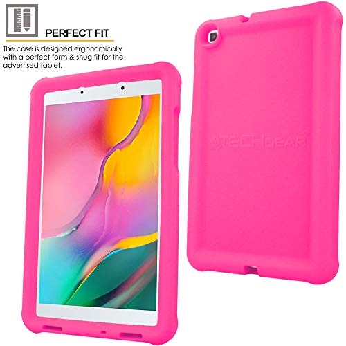 TECHGEAR Custodia Progettata per Samsung Galaxy Tab A 8.0" 2019 (SM-T290/SM-T295), Cover Antiscivolo in Silicone Morbido e Resistente agli Urti con Pellicola Protettiva, Idiale per Bambini [Rosa]