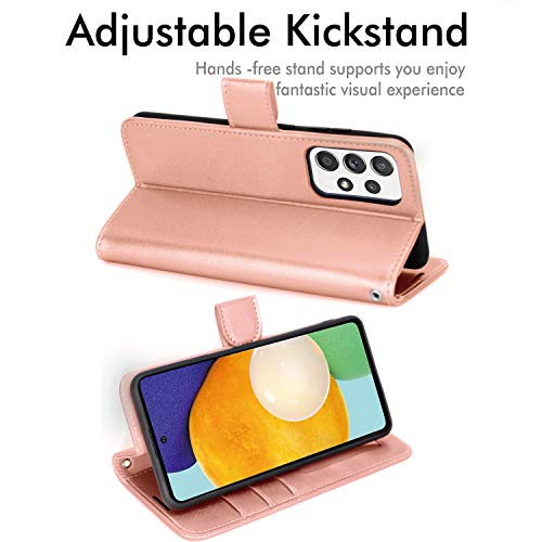 TECHGEAR Galaxy A72 Cover - Custodia Portafoglio in Pelle Sintetica con TPU Antiurto, Funzione di Supporto con Slot per Schede e Cinturino da Polso per Samsung Galaxy A72 - Oro Rosa