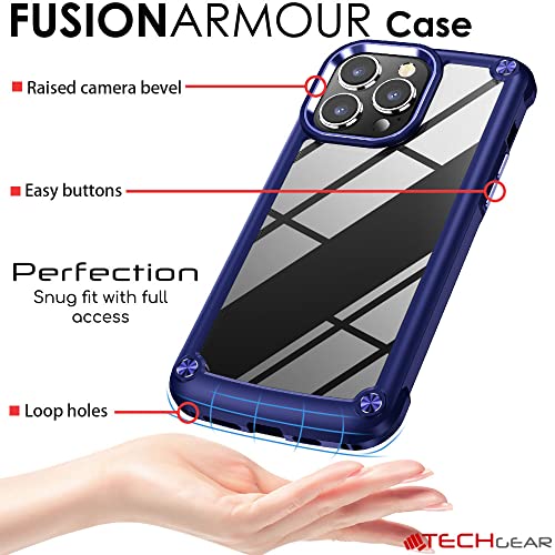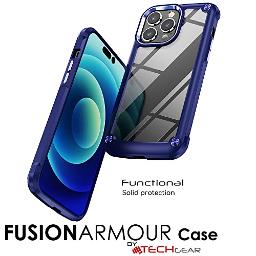 TECHGEAR iPhone 14 Pro Custodia Resistente - [Fusion Armor] Cover Paraurti Ibrido Protettiva Resistente anche Sottile Protezione per lo Schermo con Cornice Cover per iPhone 14 Pro 6.1" - blu