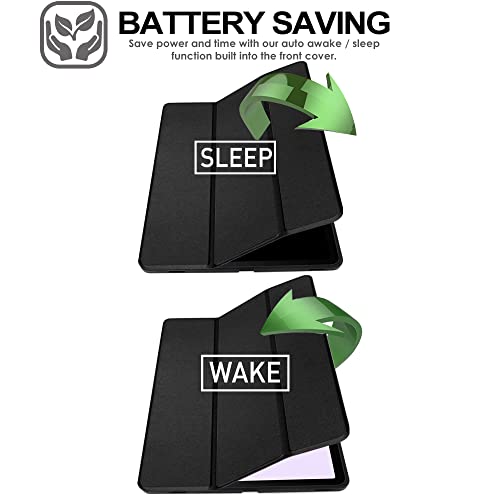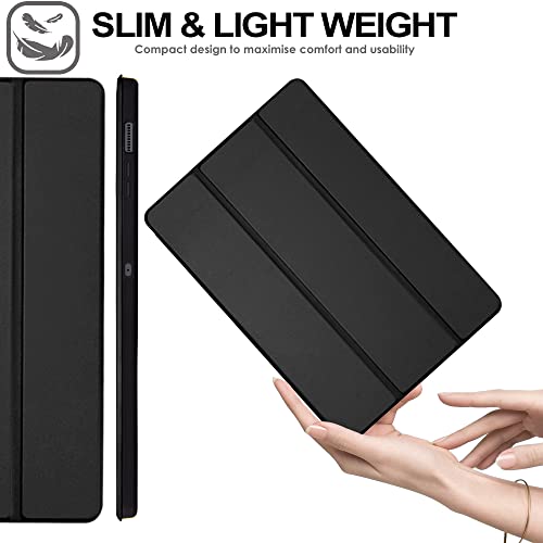 TECHGEAR Smart Cover Compatible con Samsung Galaxy Tab S7 Fe 12.4" 2021 (SM-T730 / SM/T736) - Custodia Protettiva in PU Pelle con Protezione d'angolo [Ligero] - Nero