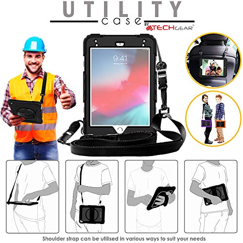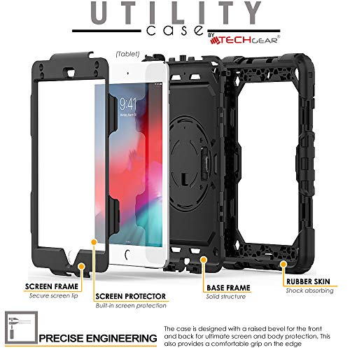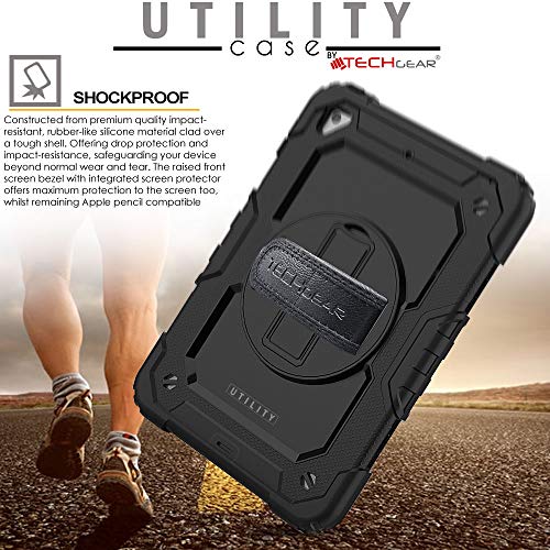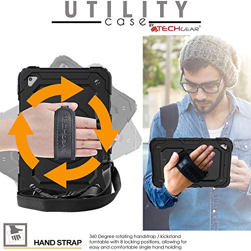 TECHGEAR Utility Custodia Compatibile con Apple iPad Mini 5 2019 / iPad Mini 4 Custodia Antiurto Resistente Supporto Integrato Girevole a 360 Gradi, Cinturino a Mano e Tracolla attaccabile - Nero