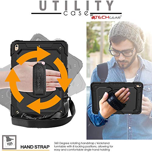 TECHGEAR Utility Custodia Compatibile con iPad Air 3 2019 / iPad PRO 10.5" Custodia Antiurto Resistente Supporto Integrato Girevole a 360 Gradi, Cinturino a Mano e Tracolla attaccabile - Nero