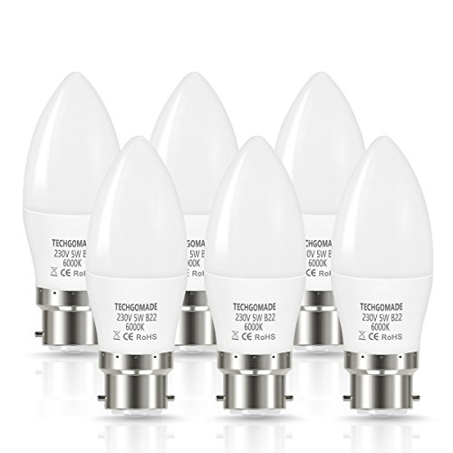 Techgomade, lampadine a LED, a candela, con attacco B22, da 5W, equivalenti alle lampadine a incandescenza da 40 W, lampadine per lampadario con luce bianca diurna, da 6000 K, non dimmerabili, confezione da 6