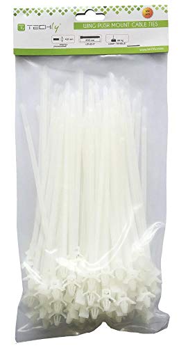 TECHLY 020102 Fascette Fermacavi con Innesto Rapido 200x4,8mm in Nylon 100pz Bianco Bianco
