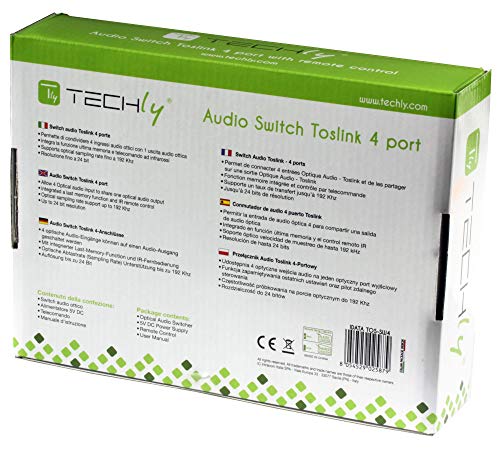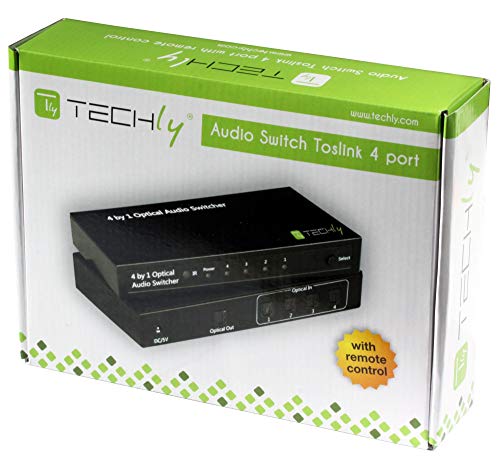 Techly 025879 Switch Audio Toslink 4 Porte con Telecomando IR Nero