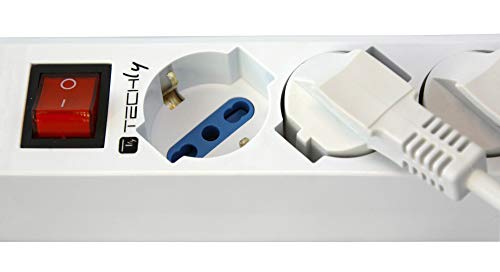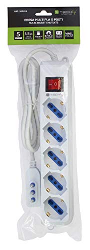 TECHLY 300453 Multipresa 5 Posti Italiana Bipasso/Schuko Spina Angolata Bianco