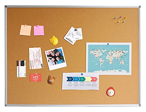 TECHLY 305397 Bacheca Lavagna in Sughero Cornice in Alluminio Anodizzato 90x120 cm