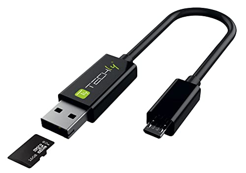 TECHLY 309951 Cavo USB OTG Micro B/USB A con Lettore Micro SD/SDHC 26cm Nero Nero