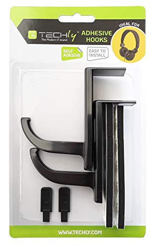 TECHLY 361728 Supporto Cuffie Adesivo Universale per Monitor e Scrivania Nero (2 Pezzi) Nero