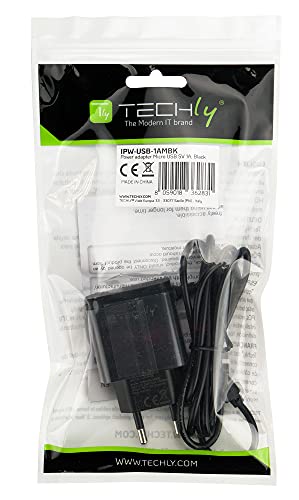 TECHLY 362831 Caricabatterie Alimentatore Micro USB 5V 1A per Smartphone Tablet Nero Nero
